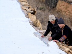 青羊融媒新年伊始,一场冬雪洋洋洒洒飘落在凉山州金阳县百草坡。热柯觉村丙乙底组被皑皑白雪覆盖,万亩索玛花林银装素裹,错落有致的彝家村寨炊烟袅袅,宛如一幅静谧的水墨画卷。山坡上的阿火雪魔芋家庭农场里,61岁的场主阿火只堵望着漫天飞雪,满脸笑意,“魔芋没有雪,就不叫雪魔芋。”这场雪,不仅为冬日添韵,更拉开了金阳雪魔芋冬季加工的序幕。 阿火只堵传授儿子白世强“独门绝活”。 工人们佩戴防水保暖手套将魔芋块翻面,