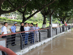 8月17日,自贡市自流井区委书记黄志勇到釜溪河滨江路等处,现场带队检查防汛工作,并看望慰问坚守防汛一线的公安交警及党员干部群众,要求全区上下时刻保持临战状态,坚实筑牢屏障,确保全区安全度汛。检查防汛工作现场黄志勇指出,当前正值异常天气、防汛形势尤为严峻的时期,各相关部门和单位要不折不扣坚决落实市委、市政府防汛要求,严格落实防汛责任,加强应急值守,加大对重点防汛区域的隐患排查和日常巡查力度,密切关注