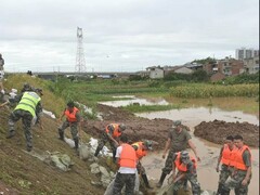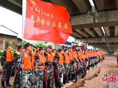 自流井区100名应急民兵驰援大安牛佛镇沱江二桥防汛抢险