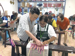 光明日报满载外国学员的大巴车驶过宽阔平整的柏油马路,行经高大现代的建筑群,穿过绿意盎然的竹林,终于到达了此行的目的地——位于四川省眉山市青神县兰沟村的中国竹艺城。 中国竹艺城的主人,年逾古稀的中国工艺美术大师、国家级非物质文化遗产“青神竹编”代表性传承人陈云华依旧精神矍铄、意气风发,即便不戴麦克风,阶梯教室的最后一排也能清楚听到他洪亮的声音。十几天的课程从带着英语、法语口音的“老师好”开始,陈云华粗糙的大