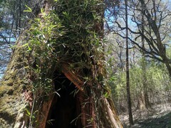 初冬时节,位于四川雅安市石棉县的栗子坪国家级自然保护区层林尽染。西华师范大学大熊猫学院教授韦伟带领学生穿梭于密林深处,在一棵基部朽空的云杉树下,他熟练地给安装在树洞外的红外相机更换电池和存储卡,而后将携带的熊猫尿液涂抹在洞穴周围。 “这样能增加大熊猫到访洞穴的几率。”韦伟解释道。这棵两人合抱才能将树干围住的云杉树,是韦伟团队精心修葺的大熊猫的“家”。此前天然形成的树洞空间较小,他们便扩大了洞穴面积