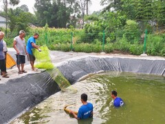 红星新闻8月6日清晨5点,资阳市安岳县长河源镇桂香村的南美白对虾养殖基地泛起粼粼波光。“起网!”随着一声吆喝,该基地建成后的第一网活虾跃出水面。“这一网,至少有300斤!” 热火朝天的捕虾场景。 塘埂上,“90”后基地负责人周兴代攥着满网活虾,指尖传来阵阵弹跳的力道。五个月前,这里还是一片荒废的鱼塘;此刻,成都的冷链车已轰鸣待发。“约2小时抵蓉,中午就能端上消费者的餐桌!”周兴代黝黑的脸上漾开笑意,“谁