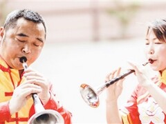 四川国际传播中心指腹在八孔间游走,时而高亢,时而婉转,一首明快的曲调从四川省非遗代表性项目唢呐艺术(丹棱唢呐)省级代表性传承人杨家文(见图左,人民日报记者宋豪新摄)的唇齿间流淌而出。 “七寸吹吹拿在手,五音六律里边有……”这首丹棱民谣中说的“吹吹”,就是唢呐。 丹棱唢呐起源于清朝中期,是中国民间唢呐南派支系之一,广泛应用于民间红白喜事、寿辰祝贺、先祖祭祀、新房落成、节日庆典等场合。2003年,丹棱县被命名为“中