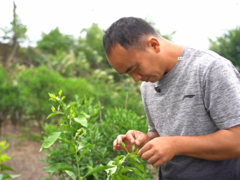 达州融媒您的浏览器不支持 video 标签。 炎炎夏日,走进资阳市雁江区丰裕镇同意村的柑橘林里,“咔嚓!咔嚓!”的剪枝声清脆悦耳。雁江区跃达家庭农场负责人罗泽被村民团团围住,只见他手持剪刀,穿梭在“雁媛”果树间为村民示范疏果要领,粗糙黝黑的手掌抚过翠绿枝桠时,老茧与新叶的摩擦,藏着他身份的蜕变——曾经年销千万的汽配“翘脚”老板,如今是扎根泥土的新农人。八载春秋,从商海到田园,他在千亩橘园里,熬出“苦尽‘柑