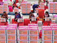 绵阳市新闻传媒中心在祥泰果业分选中心,工人正在分拣、装箱柑橘。 “今天要出口18万斤柑橘,大家抓紧!”近日,位于眉山市仁寿县富加镇的祥泰果业有限公司(以下简称“祥泰果业”)水果分拣中心内人声鼎沸,工人们忙着将刚采摘的柑橘分拣、套袋、装箱,每个环节都井然有序。 厂房另一侧,打包完成的果箱被叉车稳稳托起,整齐排列等待装车。空气中弥漫着柑橘香味,这批优质“仁寿果”正静待踏上远渡重洋的旅程。 在祥泰果业分选中心,工人正