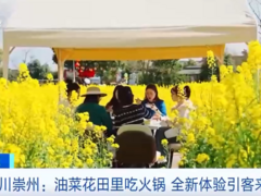 央视新闻您的浏览器不支持 video 标签。 随着气温回升,四川崇州的10万亩油菜花,进入了最佳观赏期,而一种“美食+美景”全新的体验方式,正在当地流行。 在四川崇州的白头镇,一种全新的春日体验正在流行。滚烫的川味火锅分散在油菜花海之中。“就地取材”的蜂蜜水配上火锅,解辣又解馋。越来越多的游客专程赶来打卡。 在火锅店不远处,一家乡村咖啡店也迎来不少游玩的年轻人。 沸腾的火锅、醇厚的咖啡、清新的花香,