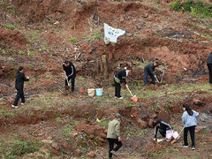 春到嘉州,万物向新。3月12日,第48个全国植树节到来,乐山市全域掀起义务植树热潮。干部群众、志愿者、青少年携手植绿护绿,以实际行动厚植生态本底,为长江上游生态屏障添绿增彩,为“十五五”生态建设开篇起势注入活力。全民植绿热潮涌 嘉州大地添新景 春风拂面,绿意萌动,乐山各地植树现场一派热火朝天。 夹江县植树现场 在夹江县马村镇水库村,干部群众细致栽植2200余株巨黄竹,新苗扎根山坡、生机盎然。夹江