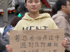 德阳市新闻传媒中心您的浏览器不支持 video 标签。 四川大学华西医院门口,永远是川流不息的人潮,裹挟着病痛、焦虑与奔波。 人群中,有一个身影格外显眼:她手里举着一块牌子,步履平缓地在人流中穿梭。牌子上的字简单又直白——爱心小屋免费住宿、吃饭、洗澡。 高小丹正在华西医院门口举牌 往来路人纷纷侧目,有人瞥上一眼,便匆匆加快脚步离去。 “肯定是骗人的。” “天底下哪有免费的午餐。” 这些质疑与揣测,她每天都在听: