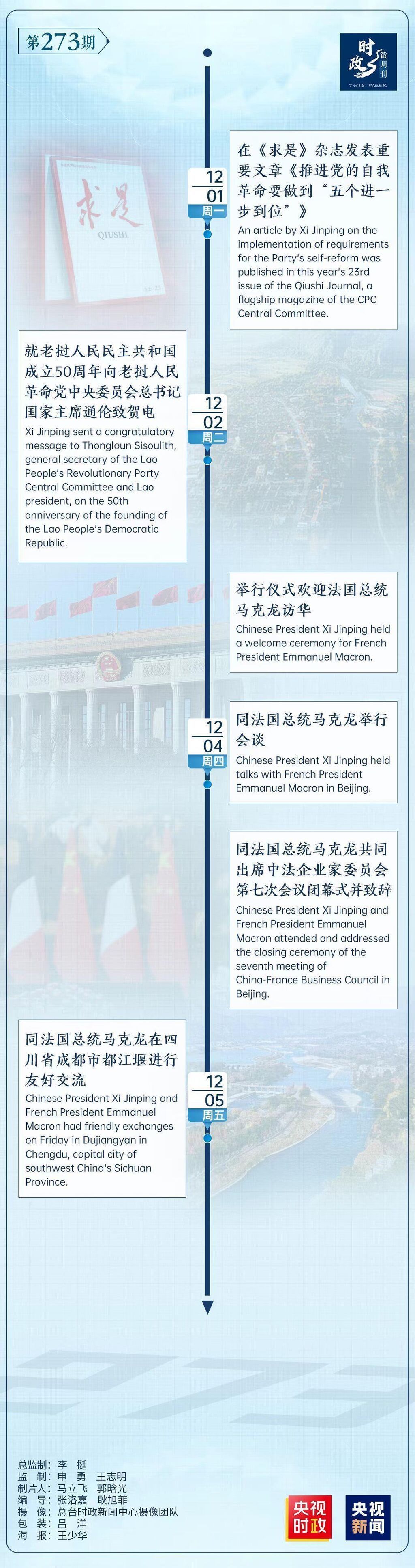 人民日报初冬的都江堰,苍山掩翠,清波流韵。 12月5日,习近平主席与法国总统马克龙沿都江堰堰功道边走边谈。这场不打领带的非正式会晤,成为中法元首外交又一个令世界注目的场景。 驻足岷江之滨,习近平主席向马克龙总统介绍都江堰的历史和意义,感慨先人“治水利民”的伟大。 从2023年的松园会晤到此次都江堰叙谈,中法元首的交流展现出文明互鉴的和合共鸣,而这两场活动都是以“水”为媒展开。 知音相契和而不同的文明智