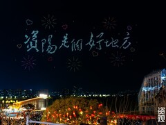 宜宾融媒您的浏览器不支持 video 标签。 “国泰民安具象化了,愿每个中国人都越来越好!” 3月1日晚8点,资阳城区苌弘广场,漫天焰火映红了28岁市民李睿的脸。他的脸上透着兴奋,也透着感动。这位特意从成都赶回的青年,在沱江边见证了家乡从未有过的沸腾。 无人机组成的“资阳是个好地方”字样。全媒体记者 张建 摄 当日,资阳“元宵”民俗巡游与无人机焰火秀如期上演。从下午到夜晚,从地面到苍穹,民俗巡游、