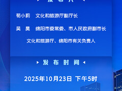 2025年10月23日(星期四)17:00,省政府新闻办将在四川新闻发布厅举行新闻发布会,文化和旅游厅副厅长苟小莉,绵阳市委常委、市人民政府副市长吴昊介绍2025四川省文化和旅游发展大会暨第十一届中国(四川)国际旅游投资大会有关情况并答记者问,文化和旅游厅、绵阳市有关负责人参加答记者问。四川发布客户端将全程图文直播,敬请关注! 点此进入直播