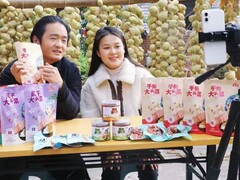 魅力广安一年之计在于春,在“中国大头菜之乡”自贡市贡井区成佳镇,万米晾晒长廊里的一串串大头菜正沐浴暖阳、迎风摇曳。直播镜头前,一位笑容爽朗的女士热情推介着这里的特产。她便是成佳大头菜腌制技艺非遗第七代传承人、电商直播达人邹宛纹。从城市新媒体从业者到扎根乡土的产业带头人,她以一部手机为桥、一场场直播为媒,让六代相传的老手艺搭上数字快车,也帮助乡亲们在乡村振兴的田野上收获满满。 邹宛纹和王睿在直播中 接棒“