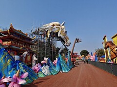 资阳观察1月10日,第三十二届自贡国际恐龙灯会的举办地——中华彩灯大世界内,施工正酣。记者走进园区,探寻本届灯会中备受期待的“生肖”主题灯组。在曾诞生过“生命之树”“精卫女神”“青城双姝”等网红灯组的第14标段,一个以马为核心、讲述木兰传奇的巨型灯组正在紧张制作,它将承载起人们对农历马年的美好期盼。 当盐文化遇见材质难题 承接该标段的自贡腾达彩灯文化艺术有限公司,今年面临一个特别的挑战:如何围绕“马”这