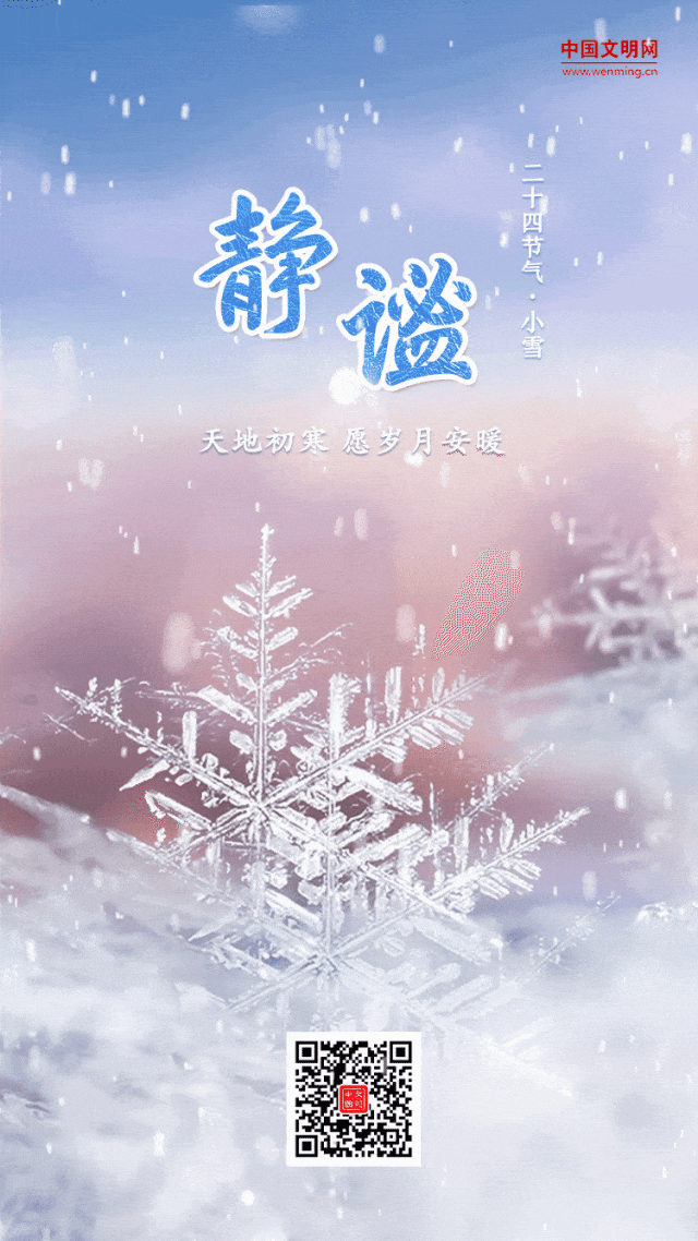 “迎冬小雪至应节晚虹藏” 今日22时03分 冬天的第二个节气“小雪”翩然而至随着气温降至0℃以下降水由雨变为雪但“地寒未甚”故雪量还不大所以称为“小雪” 小雪·三候 一候虹藏不见此时,空气干燥又寒冷落雪取代了降雨彩虹也不再出现 世间万物的五彩斑斓 都在寂静中慢慢收藏二候天腾地降天气上升 地气下降大自然静谧而肃穆白雪覆盖往日生机却掩盖不住泥土下积蓄的力量 三候闭塞成冬秋收冬藏 天地万物各归其位 逐渐