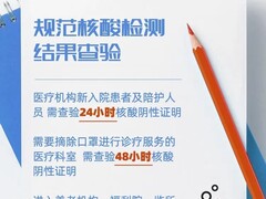 为更好应对当前疫情形势,更加科学精准防控,最大程度保护人民生命安全和身体健康,最大限度减少疫情对经济社会发展的影响。今日,四川省应对新型冠状病毒肺炎疫情应急指挥部办公室发布了进一步优化疫情防控5项措施: 一、规范核酸检测结果查验。除医疗机构新入院患者及陪护人员需查验24小时核酸检测阴性证明,需要摘除口罩进行诊疗服务的医疗科室需查验48小时核酸检测阴性证明,进入养老机构、福利院、监所的外来人