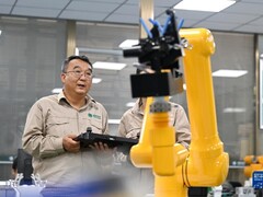 人民日报新华社天津9月26日电题:张黎明:创新使工作更快乐 新华社记者毛振华 张黎明和同事在调试第四代配网带电作业机器人(2022年9月8日摄)。新华社记者 赵子硕 摄 “一个移动充电枪覆盖6个车位,如果安装5个,就能覆盖30个车位。”在创新工作室,党的二十大代表、国家电网天津电力滨海供电公司配电抢修班班长张黎明同两名工程技术人员围坐一起热烈讨论,身旁的一叠纸上画满了设计草图。 讨论间隙,张黎明向记者介绍