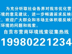 为充分听取社会各界对我市优化营商环境的意见建议,进一步畅通诉求反映渠道,欢迎广大群众和市场主体积极反映营商环境的问题和线索。 自贡市营商环境线索征集热线:19980221234