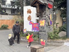 雅安市融媒体中心您的浏览器不支持 video 标签。 清晨的阳光,掠过玉林西路墙头那匹蜡笔画的彩色小马。82岁的周世泰停下脚步,眯眼看得入神。 “这是哪家娃画的?” “芳草四幼的,娃才5岁。”年轻的策展人刘小乙答。1月27日,他正在街头布展“天马绘星河”画展。 “有潜力,可以让娃娃来我们这边学学。” 这个寻常的对话,正是成都芳草街蓓蕾社区现在的样子——孩子们的想象力找到了自由生长的“画布”,年轻的创客们获得了向前