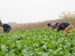 木里县融媒中心村民在大头菜田里干活。 深冬时节,驱车行驶在国道214线贡威路段,往威远县向义镇大冲村方向前行,每过几十米就能望见路边村民院坝里晾晒着的大头菜。 大冲村党群活动中心外的坝子里,也有20余列刚搭起的晾晒架,新收大头菜整齐排列。“今年大丰收。”村干部杨远强笑起来压不住嘴角,“不仅是收成好——每亩地要多收1000斤,还不愁卖——走出家门就能卖给加工厂。” 大冲村还有个响亮的外号:大头菜村。种植大头菜,