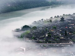 天府新视界阆中古城全景。任冠金 摄 冬雨过后晨光初透,82岁的阆中古城居民王明奎像往常一样,前往古城中天楼下的面馆,一把凉面、一浇汤汁便是他的早饭;一街之隔,中学生骑着单车三五成群,从状元坊下掠过,驶往古城西门处的阆中中学...... 1月21日,“保护文化遗产·我们在行动”宣传活动在四川阆中启动。宣讲环节,阆中古城景区管理局干部、文化遗产保护志愿者冉小妹分享的2个生活切片,彰显着阆中古城的生活味和烟火气