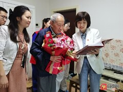 近日,正值重阳佳节,自流井区钟云山社区携手国网四川电力(自贡)连心桥共产党员服务队组成一支志愿服务队走进抗战老兵王榆青家中,给王老及家人送去鲜花、牛奶、油等生活物资,并送上节日的问候。在王老家里,志愿者们与王老夫妇促膝长谈,为王老仔细检查用电安全、煤气安全情况。随后,集体观看纪录片《冰血长津湖》。志愿者将包饺子的肉馅、面皮一一准备到位,把节日的祝福都融入到了饺子里,边包饺子边拉家常,有说有笑,营造