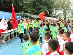 10月13日下午,自流井区大湾井小学操场内气氛热烈,鲜艳的红领巾伴随着孩子们欢快的笑脸,舞台上老少同台节目精彩,让共庆中国少先队建队日72周年充满欢乐和别样的韵味。“美文如画,诵读如歌。今天,我们诵读千古美文,传承华夏文明。今天,我们登上这多彩的舞台,共读中华经典,聆听古诗书韵……”随着小主持人极富感染力的开场,“丹心向阳 经典诵传”诗歌朗诵大赛拉开帷幕。不管是气势恢宏的《我骄傲,我是中国人》,抑