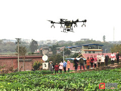 近日,在自流井区仲权镇宏伟村,农技专家向前来参加农业技能培训的村民详细讲解了果树田间管理技术。随后,村民前往户外,现场观摩了无人机飞防作业。飞防作业“飞防作业具有速度快、效率高、面积广、效果好等优点,同时还能节约药剂使用量,减少农业面源污染。”在一片油菜地前,技术人员介绍了飞防作业的优点,讲解了无人机操作技术,随后现场展示了飞防作业。随着马达轰鸣,一架满载药剂的无人机飞临一片菜地上空。喷口开启后,