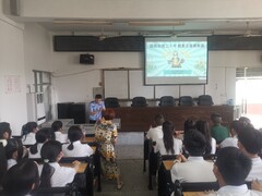 区卫生健康局为充分发挥学校在毒品预防教育中的重要作用,使广大青少年认清毒品危害,进一步增强防毒、拒毒意识。近日,由自贡市公安局自流井分局主办,自贡市第六中学校承办的自流井区“砥砺奋进三十年•健康无毒谱新篇”的禁毒宣传活动在自贡六中阶梯教室举行。自流井区公安分局副局长、区禁毒办主任刘姚,郭街街道办事处副书记周玉香,以及自流井区公安分局禁毒大队、郭家坳派出所的相关负责人出席本次活动。 在宣传教育活动中,郭家坳