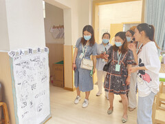 区卫生健康局5月10日,自贡市市级机关幼儿园接待了沿滩区黄晓玲名师工作室成员到园参观学习交流。 在幼儿园的组织安排下,工作室成员教师分为两组跟随保教主任尹文绪与科研室主任杨国兰走进幼儿园班级深入参观学习。 通过幼儿园教师的讲解,工作室成员深入参观了解教育环境、班级环境创设、班级教育故事、主题活动开展、区角游戏活动等。 随后,保教主任尹文绪老师对教育理念、园本盐味课程的构建实施进行了分享,双方教师就园所