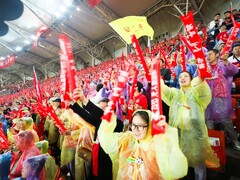 “自贡队,雄起!”10月12日晚,四川省城市足球联赛川南赛区第四轮比赛在南湖体育中心激烈上演,来自自流井助威团看台的呐喊和鼓点格外响亮! 自贡灯城燊龙队坐镇主场迎战资阳中国牙谷队,吸引了两万余名观众到场。尽管秋雨绵绵,却丝毫未减自流井区助威团为燊龙队呐喊的热情。 蒙蒙细雨中,自流井区组织的百余人观赛助威队伍成为看台上一道亮丽的风景。他们身着统一红色助威服,手持拉拉棒,挥舞旗帜,吹响口哨,击鼓呐喊