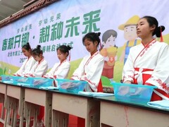 叠纸、画形、剪样……小小的纸片在指尖跳动,没几下一朵漂亮的桃花就跃然眼前。3月22日下午,在塘坎上小学的阶梯教室内,由自流井区文化广播电视和旅游局主办,区文化馆承办的“非遗进校园·文脉永相传”活动如火如荼地开展,80余名学生与剪纸传承人一起领略剪纸这项非遗文化的美妙神奇之处。 “根据画纸来,剪刀拿稳,沿着线慢慢剪……”课堂上,自贡非遗文化剪纸第四代传承人杨尚禄向学生们介绍了自贡剪纸的历史发展知识