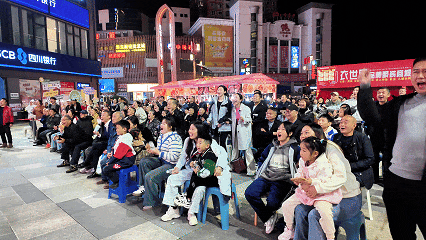 10月29日晚,川超联赛川南赛区战鼓擂响,自贡灯城燊龙队主场迎战宜宾长江首城队,让整座城市为之沸腾。赛场外,遍布全城的第二观赛点人潮涌动,球迷们的激情被彻底点燃,与主场同频共振,共同见证了主队从 0:2 到 4:2 逆风翻盘的胜利。 第二观赛点  助威团超燃 场外的球迷,也并未缺席这场城市荣耀之战。当晚,自流井区的川超第二现场—梵华1939与东方广场,高清大屏上正同步直播川超第六轮焦点战现场