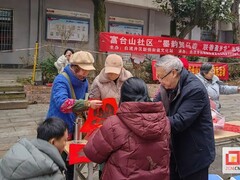 1月22日,由自流井区新街富台山社区、市老年书画研究会山水组共同举办的“墨韵贺马春,联香盈岁华”写春联书画作品赠送活动,在富台山社区文化活动广场举办。来自市老年书画研究会的书法名家、绘画艺术家和社区党员书法(绘画)爱好者、党员志愿者等10余人泼墨挥毫,以笔墨为媒,为居民送上满载马年期许的新春祝福。 “手写的春联才有年味!贴在家里既喜庆又有意义。”刚领到春联的罗阿姨笑容满面地说。现场,红色对联纸张