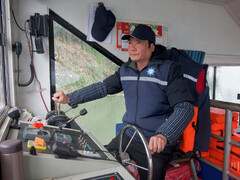 四川观察您的浏览器不支持 video 标签。 2月10日临近晌午,沱江岸边,一艘渡船停靠在自贡市富顺县狮市镇的渡运码头。“赶完场回家吃饭了?”坐在驾驶舱里的张同伙见陈家富上了船,熟络地招呼了一声。一旁,他的妻子杨润琴正忙着安全检查,待所有乘客坐定后,走到船头起锚。 狮市渡运码头的船长张同伙正在驾驶渡船过江。 张同伙夫妇是船上仅有的两名船员,而这艘船则是这座码头唯一的渡船。乘客陈家富的家,就在与狮市镇一