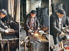 天府新视界您的浏览器不支持 video 标签。 “李师,我预定的12把菜刀做好没?” “在磨刀了,马上就完工。” 2月10日上午,在德阳市中江县富兴镇阳平村的铁铺,81岁的村民肖宏达一大早就从相邻的永太镇赶车来到阳平。“儿子女儿今年要回来过年,专门叮嘱我来阳平多买几把菜刀。”肖宏达说,一双儿女都在新疆开餐馆,用过不少菜刀,但始终对家乡的“阳平菜刀”情有独钟。“今年的年夜饭也是用‘阳平菜刀’做的,等他们到