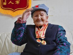 川观新闻您的浏览器不支持 video 标签。 2月5日上午10时许,冬日的暖阳照在都江堰市奎光塔街道龙潭湾社区的一处房间里,105岁的红军战士王全英老人精神矍铄,正端坐在沙发上看着电视,安享恬静的晚年时光。 “我们被敌军打散了,独自翻越雪山,号声就是命令,我们一直向前!”在老人的记忆深处,是90年前参加红军时的峥嵘岁月,提起那段时光,王全英目光炯炯。 王全英面向记者镜头敬礼。 14岁参加红军,被敌人打