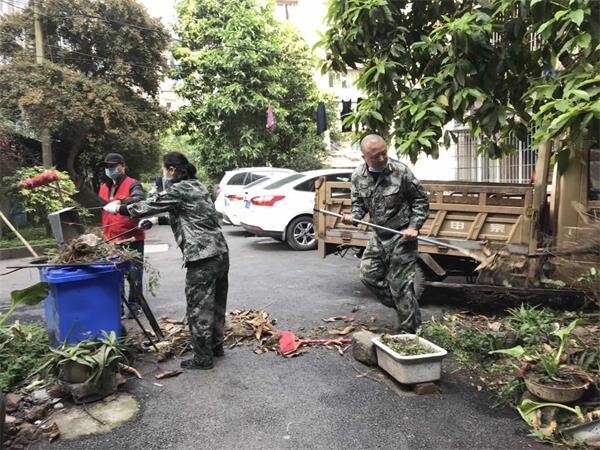 近日,自贡市自流井区人武部干部职工来到定点联系的郭家坳街道火井沱社区开展环境卫生清理整治,这是该人武部落实地方党委政府“三创”工作部署要求,助力全区“三创”百日攻坚战的实际行动。