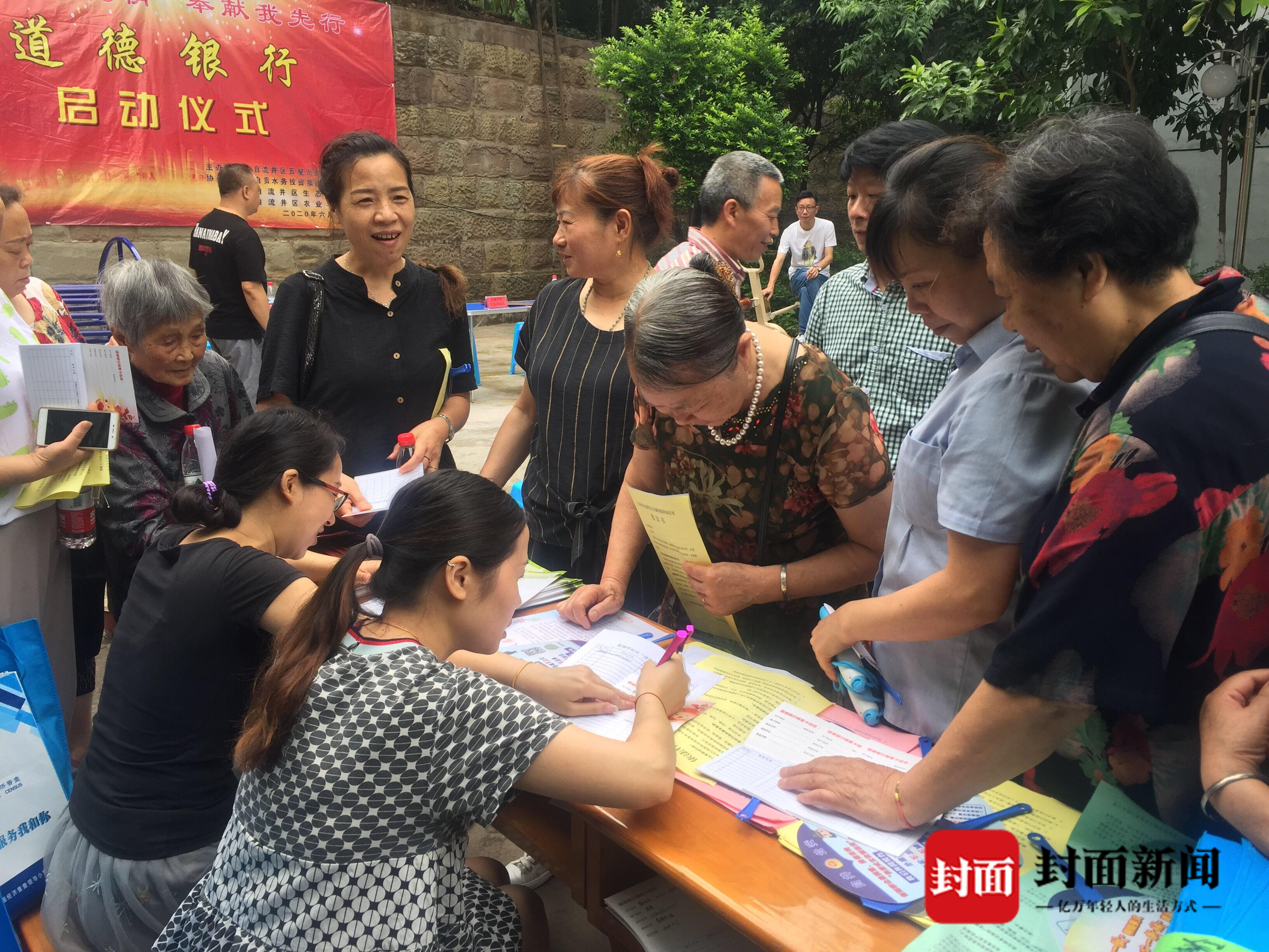 “来来来,欢迎大家加入‘道德银行’,奉献爱心、互帮互助,共同建设五星街黄桷坪社区美好家园和富裕文明的新生活!”6月22日,在自贡市自流井区五星街黄桷坪社区小广场上,该区道德模范毛大昆正在向周边居民宣传“道德银行”。三天前,黄桷坪社区“道德银行”正式成立,毛大昆与其他5位社区居民成为首批“道德银行”的开户者,引领社区文明新风,这也是自流井区的第三家“道德银行”。