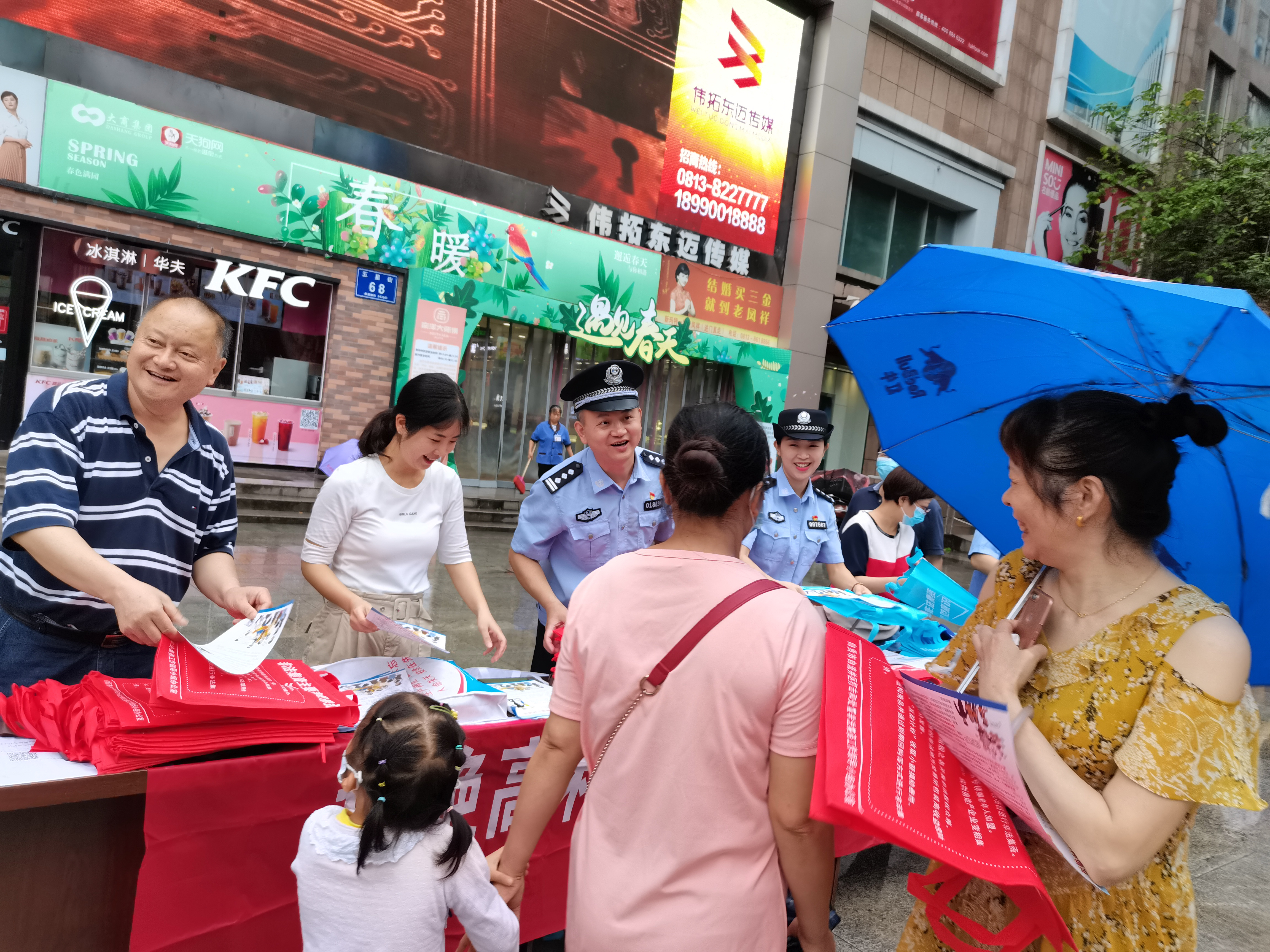 看着匆匆来往的群众,民警小韩赶紧上前给路过的大姐递上一张宣传资料。