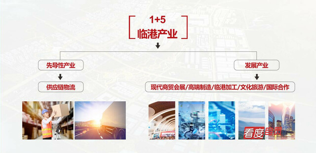 按照“港、产、城”融合发展理念,重点在西南(自贡)国际陆港布局“1+5”临港产业。“1”是供应链与物流;“5”是现代商贸会展、高端制造、临港加工、文化旅游、国际合作等主导产业。港区按“一核八区”划分,“一核”是港口功能(作业)核心区,“八区”是综合保税区、临港商贸区、临港加工区、国际文旅发展区、临港总部区、产城融合区、智能公路港区、散货物流区等八大片区。