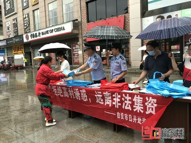 (记者 叶艳)“如果有人给你说投资收益高,有提成、分红、利息这些都是幌子,请一定记住,你想着它的利息,他就想着你的本金!”6月16日一早,自流井公安分局联合区财政局金融办、五星街街道等相关部门在自流井区新玛特门口开展以“拒绝高利诱惑,远离非法集资”为主题的防范非法集资宣传活动。
