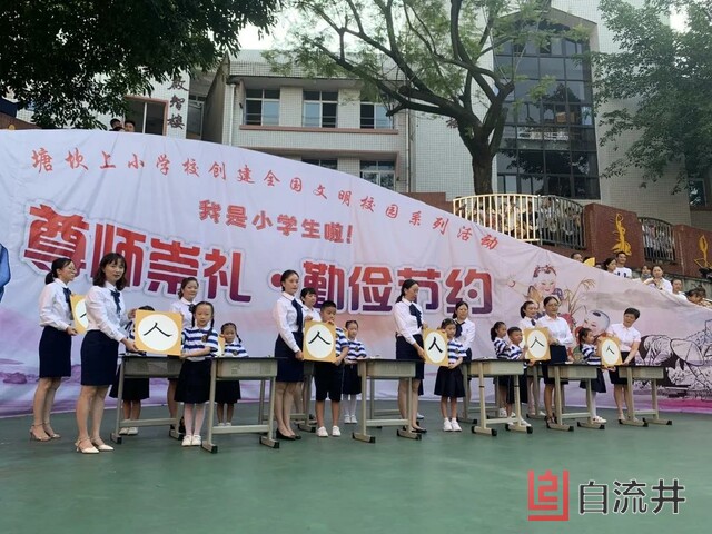 呈拜师贴、穿过“成长门”、行拜师礼、书写“人”字、砸金蛋……一场场富有传统文化韵味的新生入学仪式在自流井区举行,这是我区开展的创建全国文明城市校园系列活动之一,以“爱国、立人、尊师、崇礼”的传统优良教义开启孩子们的人生新阶段。