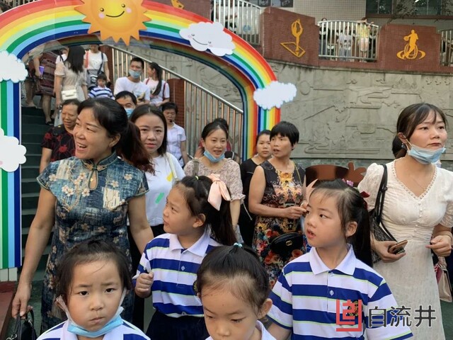 在热烈的掌声中,光大街小学一年级的班妈妈领着孩子们穿过入学门,进入操场,一起感受开学季的喜悦!