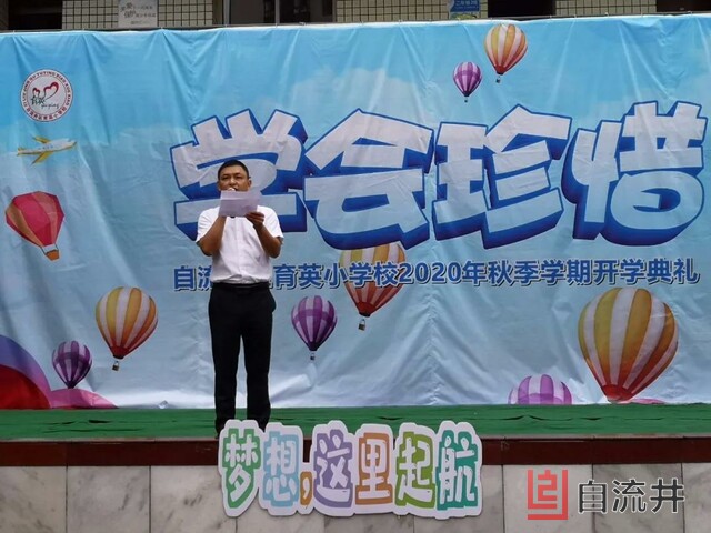 首先由学生代表发言,他表达自己对自贡创文创卫活动所做的努力,并且对新学期的学习和生活定下目标。