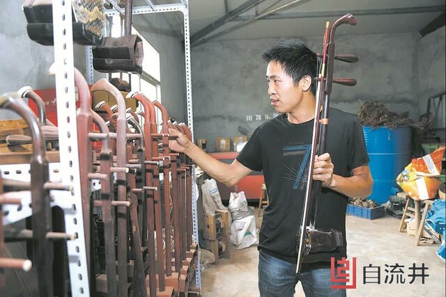 在新国村8组的一个普通农家院落里,不时会传出宛转悠长的二胡乐声,人们很难想到,这里是一个二胡制作家庭工坊,村民罗朝宾靠着二胡制作手艺养活着一大家人,也编织着自己的创业梦。