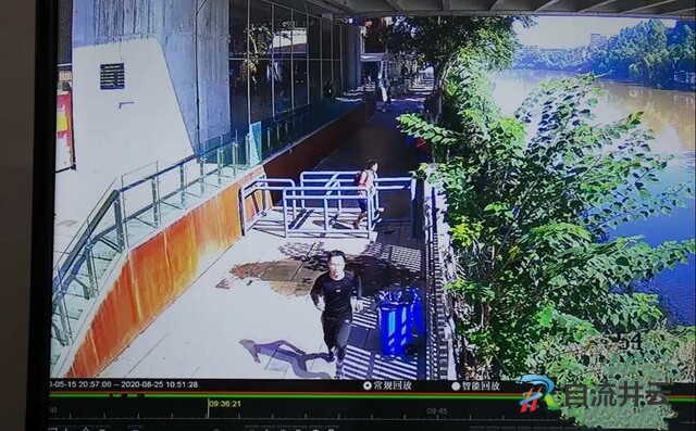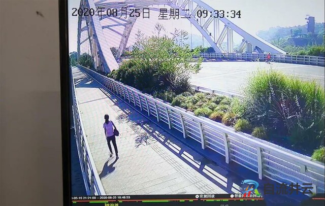 监控显示,当天上午9点33分,一名身着浅色上衣的女孩出现在桥梁左侧(上游方向)人行道,女孩步行至桥中间位置停了下来,探出头看了看桥下,然后放下背包翻越护栏纵身跳了下去,在河面上激起巨大的水花。