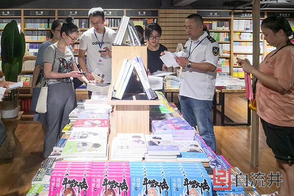 8月5日,自贡市自流井区委宣传部、区委网信办联合区“扫黄打非”办成员单位对辖区出版物市场、文化娱乐场所、培训机构、网络直播公司等开展综合巡查,收缴一批涉嫌淫秽色情、封建迷信、低俗等内容的非法出版物和光盘,净化网上网下文化市场环境。