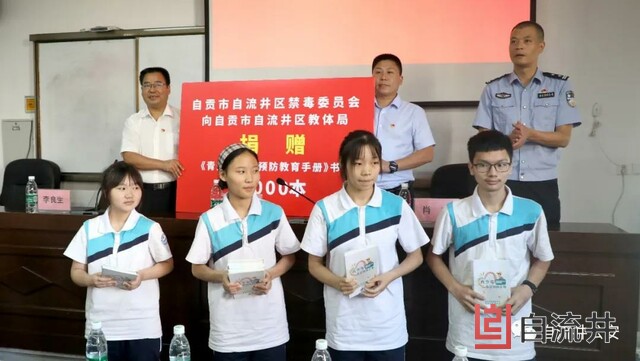 最后,吴波书记和肖杰政委代表区禁毒委向自流井区教体局捐赠禁毒读本1000余册。
