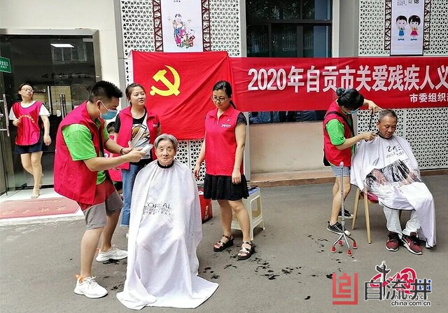近日,为弘扬中华民族扶残助残的传统美德,体现“赠人玫瑰,手留余香”的志愿者服务理念,由自贡市委组织部、市委宣传部、自流井区残联联合在五星街磨子井社区开展为残疾人义务理发和关爱残疾人送清凉活动。
