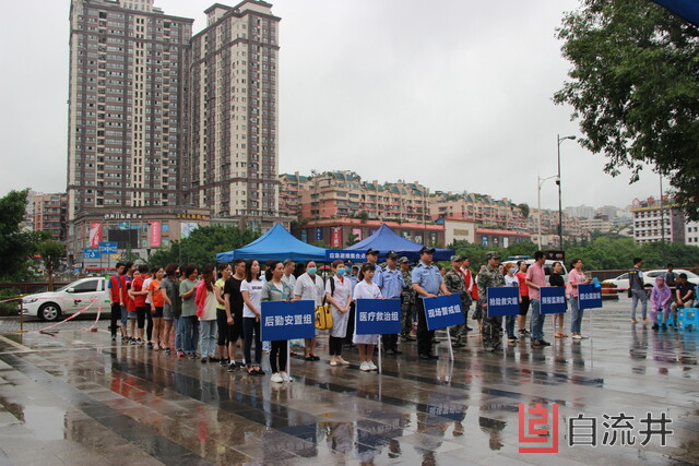 为检验《突发地质灾害应急预案》的可行性,也借演练检验各部门应急处置与协同配合能力,2020年6月17日上午,自流井区2020年度汛期地质灾害避险演练在新街釜溪步行街广场举行,取得圆满成功。